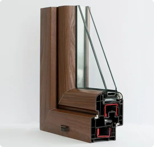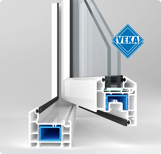 Для повышения прочности пластика его армируют. VEKA использует оцинкованную сталь и квадратный способ. Его конкурент – стальное П-образное армирование и фиброволокно, которое эффективно усиливает пластик и при этом весит на 40% меньше стальных элементов. Это позволяет устанавливать окна в широкие проемы.