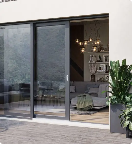 Параллельно-раздвижные системы от Рехау — уникальное решение, обеспечивающее не только легкость открывания, но и превосходную водонепроницаемость. Intelio Slide задействуют как в роли панорамных окон, так и в качестве двери. Благодаря удобной функции открывания вы сможете грамотно использовать пространство, так как в открытом положении дверь не занимает место в помещении.