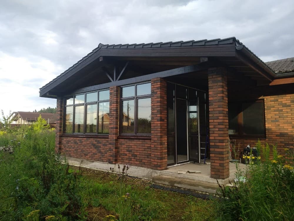 Выполненные работы: Установлено 5 окон, Остекление входной группы, профильная система REHAU Brillant и Delight, Фурнитура Siegenia Titan AF, Стеклопакет 40 мм с раскладкой внутри