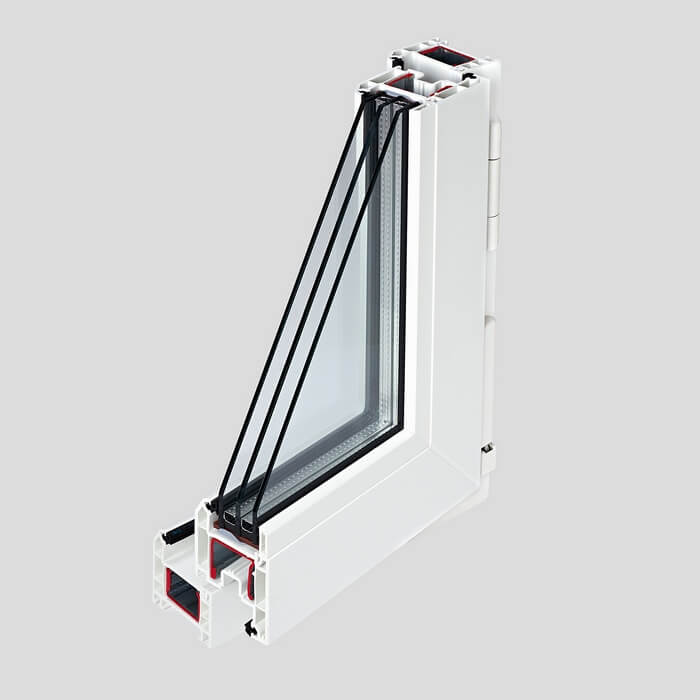 Эта система разработана с учетом российского климата, сильных морозов и перепадов температур. Благодаря многокамерному стеклопакету эта оконная система сохраняет в помещении тепло.