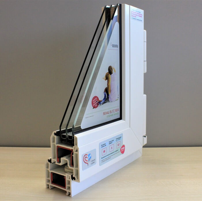 • В составе трехкамерного профиля не содержится кадмий, коэффициент сопротивления присутствующих уплотнителей составляет 0,62 м2с/Вт,