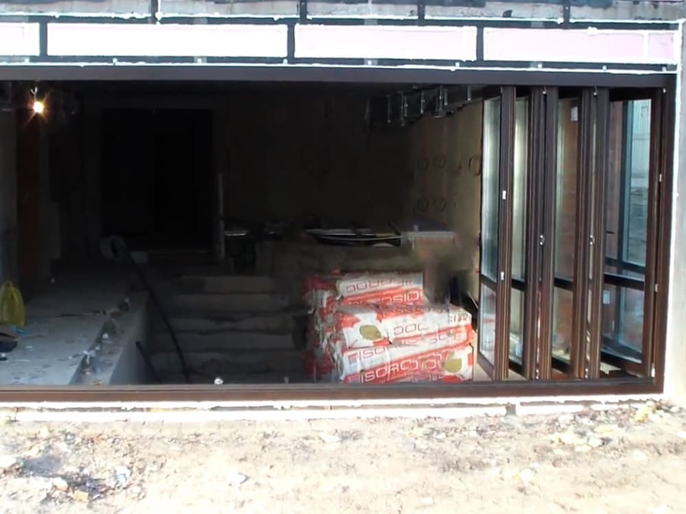 Выполненные работы: Установлено 2 подъемно-сдвижные двери, Профильная система SCHUCO ASE 80.HI, Покраска профиля в цвет, Установка с помощью манипулятора